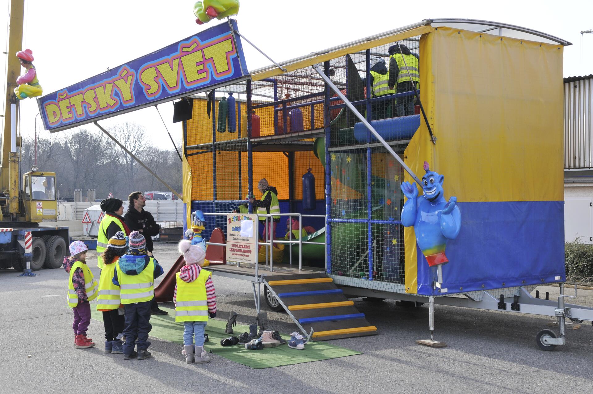 Oranžové náklaďáky se sněhovými radlicemi, sněžná fréza nebo stroj, který pomáhá silničářům odstraňovat staré pařezy. To nebyly jediné atrakce připravené pro malé návštěvníky, přestože zejména kluci možnost usednout za volant mohutného automobilu a pořádně zatroubit rozhodně ocenili. Kdo si stroje prohlédnul, mohl do skákacího hradu nebo do labyrintu dětského světa. A dlouhá fronta stála jako tradičně u uměle navršeného kopce sněhu, na jehož vršku dva silničáři téměř nestíhali odbavovat zájemce o svezení na bobech.