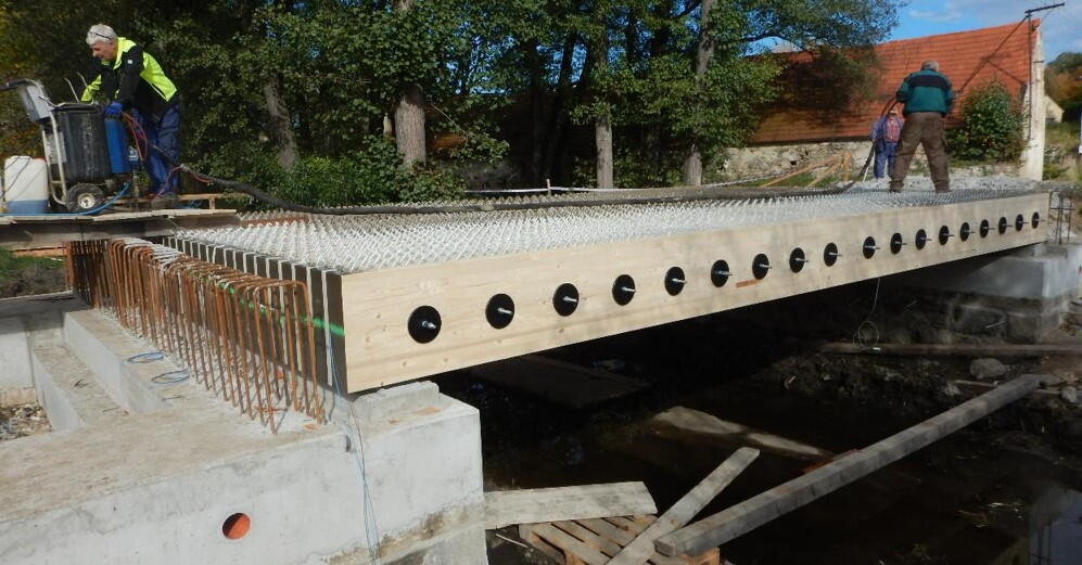 Za novým postupem, při kterém se na betonový základ umisťuje konstrukce z lepeného lamelového dřeva, stojí tým odborníků z České zemědělské univerzity v Praze, kteří ve spolupráci s tuzemskými stavebními firmami metodu uvádějí do praxe. Dřevo je chemicky ošetřené nástřikem polyureou, která ho chrání před vnikem vody. „Most samotný má čidla, která hlásí, zda nedošlo k průniku vody dovnitř konstrukce. Pokud by se tak stalo, systém včas upozorní techniky na to, že došlo k porušení hydroizolace a je potřeba oprava. Nová metoda je podle ohlasů z praxe rychlejší na realizaci, levnější a dá se při ní využít kůrovcové dřevo. Ne všechny mosty se samozřejmě má smysl ze dřeva stavět, ale u menších staveb by to mohlo být výhodné, a proto chceme vše vyzkoušet v pilotním projektu,“ uvedl Zdeněk Vašák, ředitel SÚS Pk.